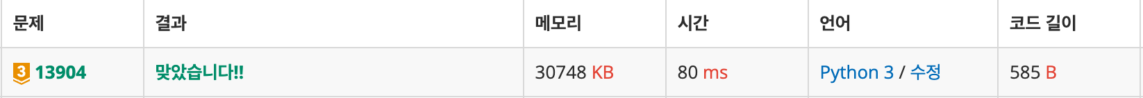 - 그 날로부터 가능한 과제 중 제일 높은 점수 고르기