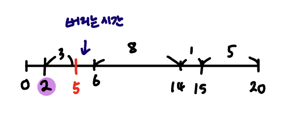여기서 남은 시간(6)보다 마감 시간(5)이 빠를 경우 제 시간에 못하기 때문에